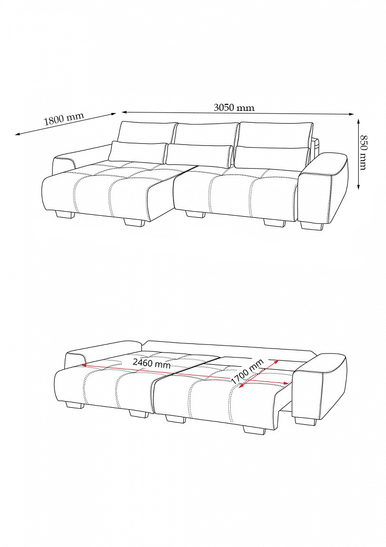 - Спальне місце: Ширина 246 см Глибина 170 см