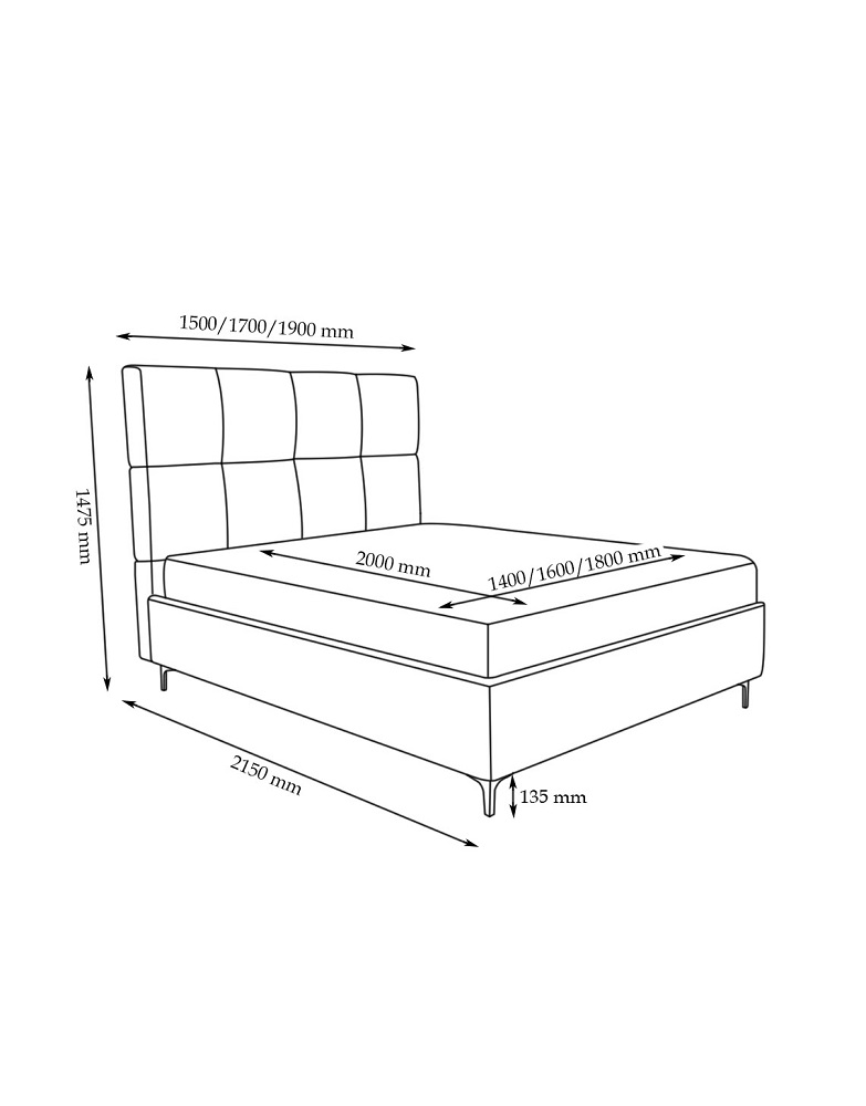 - Спальне місце 200 см х 140 см, 160 см, 180 см (на вибір)